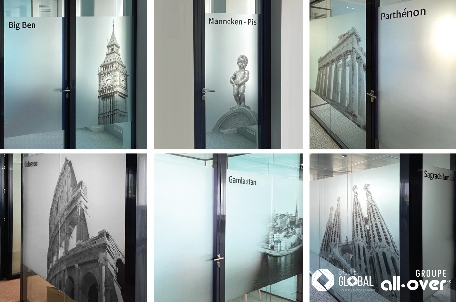 De l’intimité pour Axa ! Après les personnages célèbres, Groupe Global a choisi d’enrichir les dépolis avec des monuments historiques pour les bureaux de Lyon ! Une chouette idée qui a en plus le mérite d’orienter les visiteurs sur ce grand plateau ! Nous avons imprimé et posé.