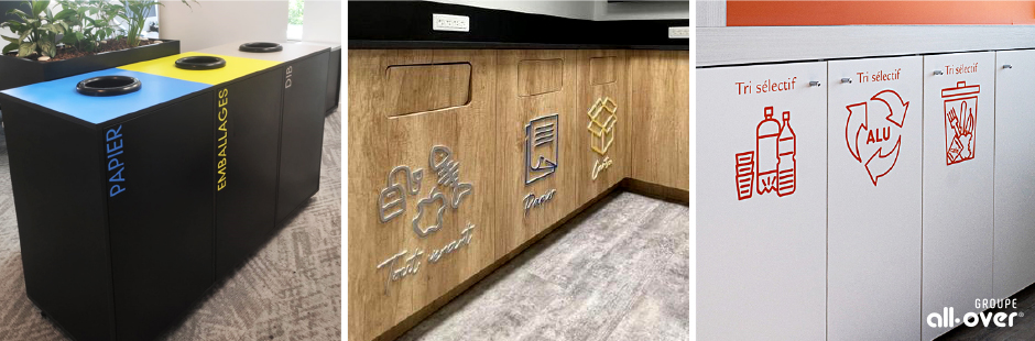 Un aperçu de nos derniers habillages meubles «TRI SÉLECTIF », en entreprise et en collectivité.