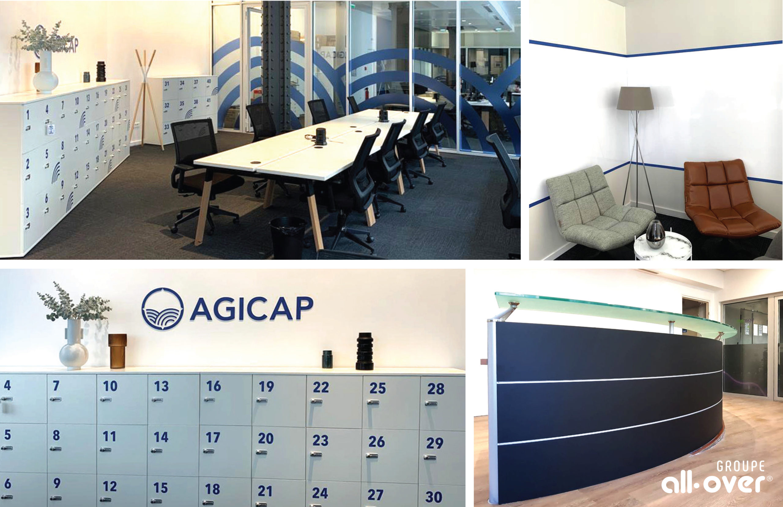 Un chantier que nous avons réalisé cet hiver en partenariat avec Deskeo que nous jugeons intéressant de vous montrer ! Ce décor et cette signalétique reflètent parfaitement l’identité de l’entreprise : du bleu bien sûr, mais aussi du blanc et des spirales… Nous sommes « bien » dans les bureaux d’Agicap France et c’est là l’essentiel !