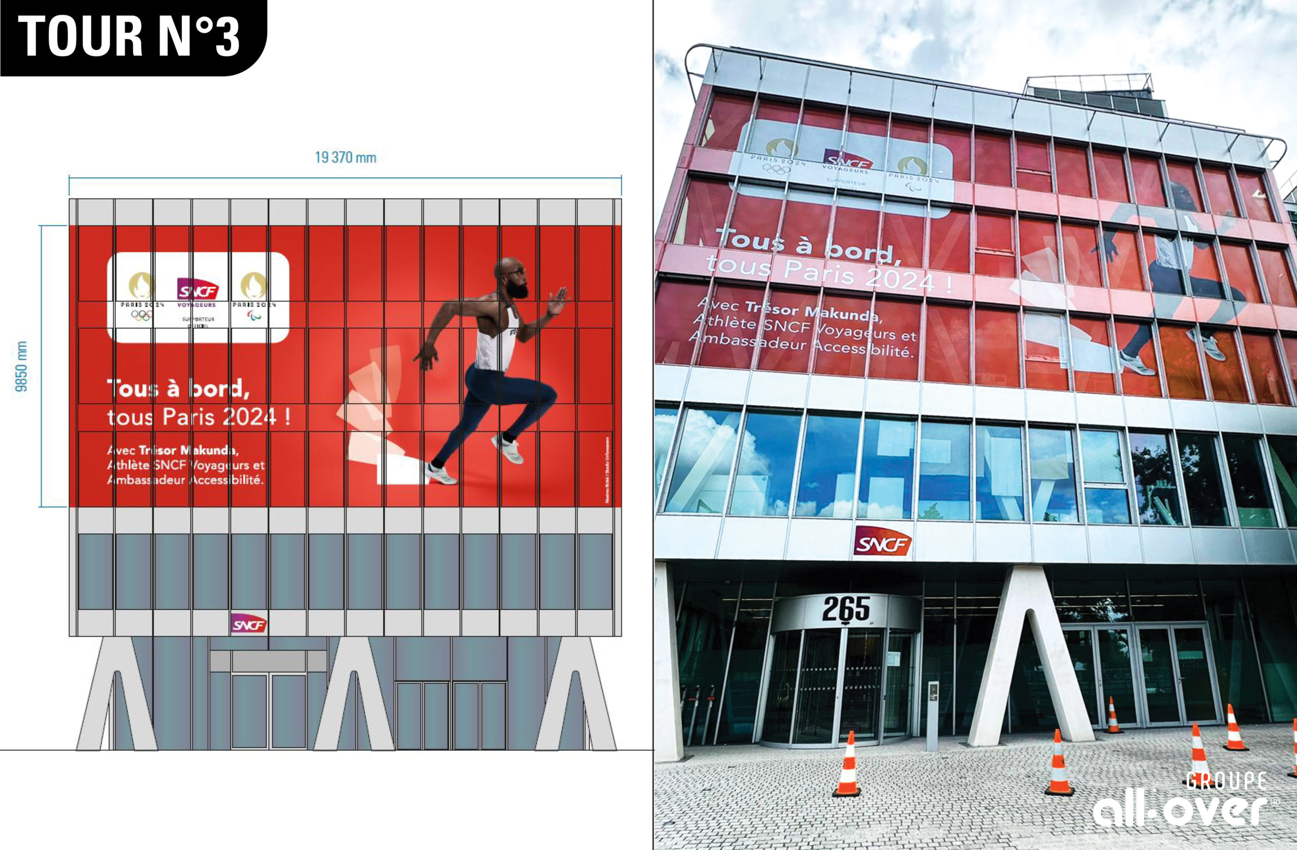 Voici comme promis l’habillage en adhésif de la troisième Tour ! Groupe SNCF met encore une fois à l’honneur ses engagements sportifs et