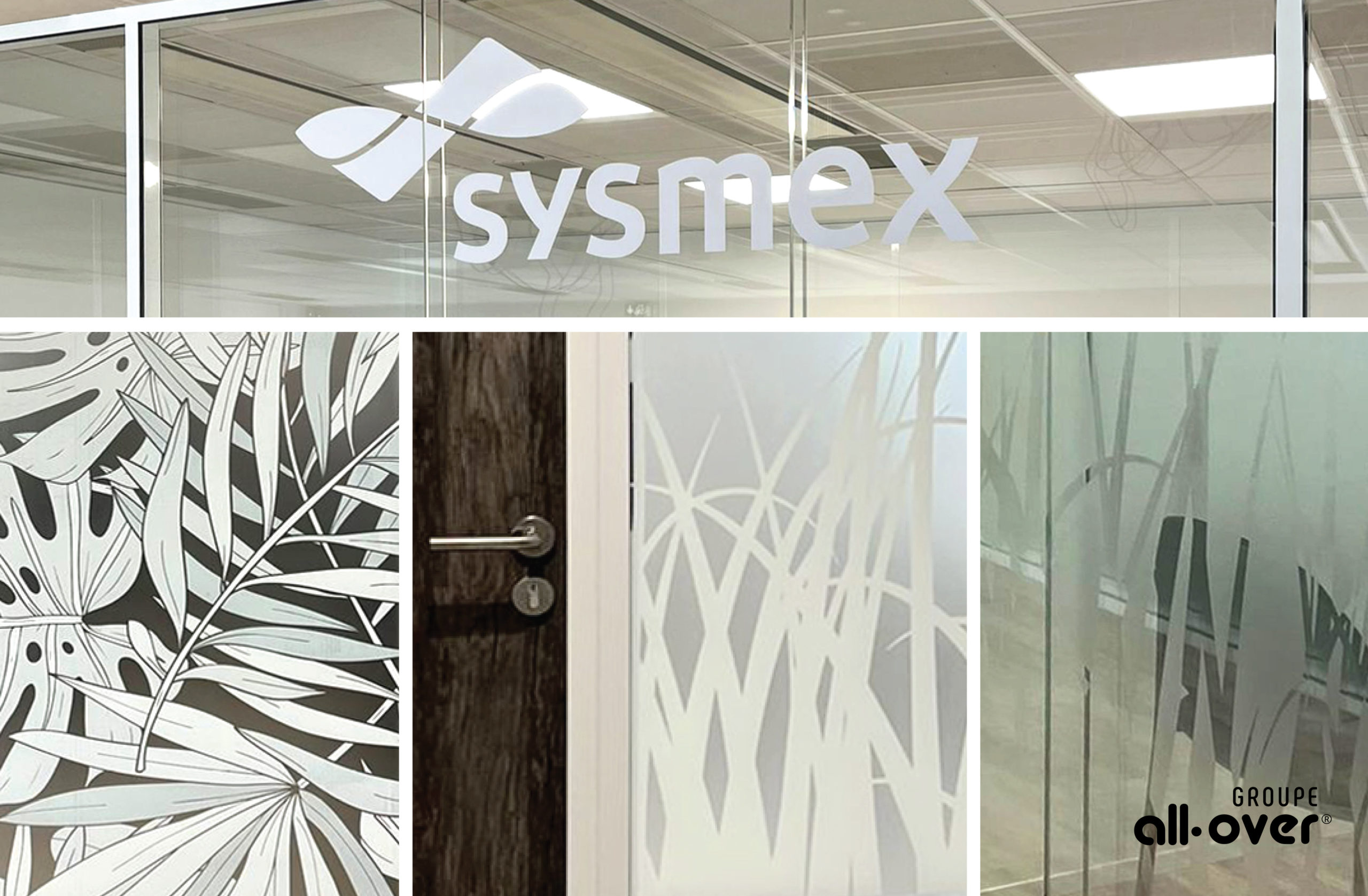 Un élégant jeu de motifs « végétal » chez Sysmex Europe. Nous avons alterné impression vernis sélectif et impression blanche, les espaces sont accueillants, sobres et intimisés… Notre mission est donc accomplie 👏