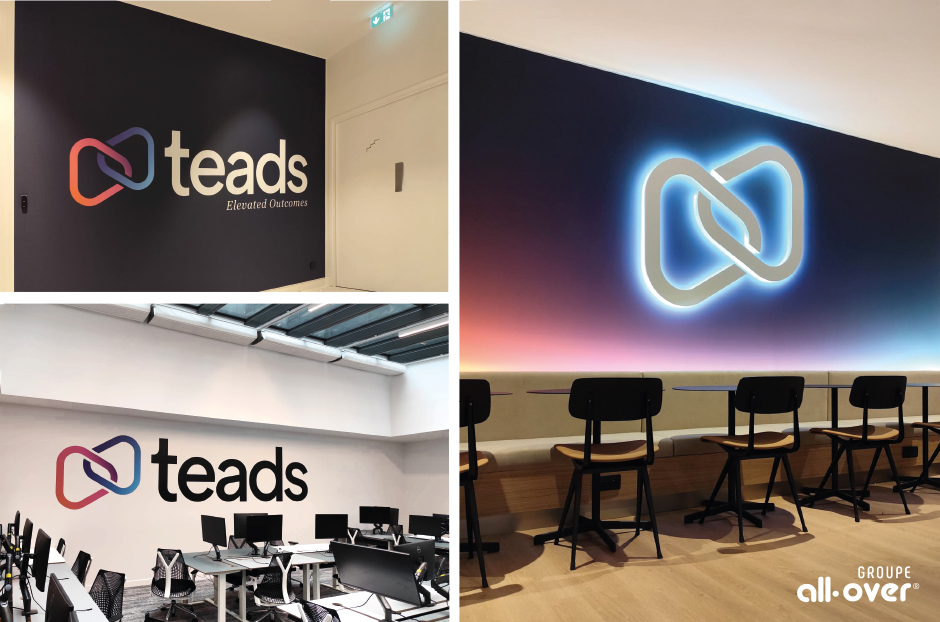 Pour PATCHWORK for Teads, nous sommes intervenus exclusivement sur les Ă©lĂ©ments dĂ©coratifs et la signalĂ©tique, avec une dĂ©clinaison graphique du logo pensĂ©e pour habiller les espaces, ainsi quâune mise en lumiĂšre destinĂ©e Ă renforcer leur identitĂ© visuelleâš.