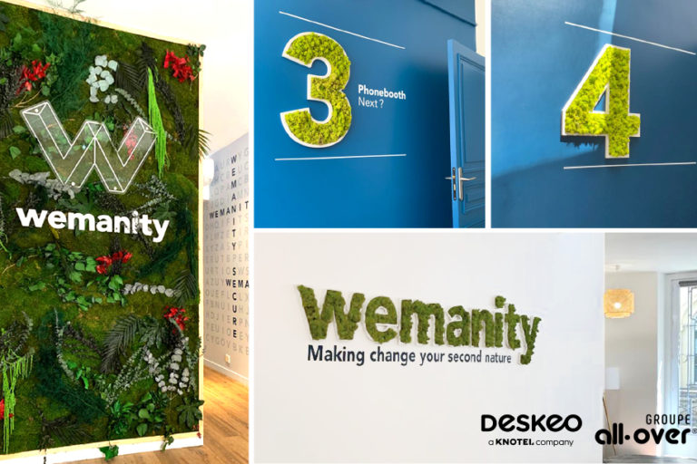Nous avons réalisé en partenariat avec Deskeo de la signalétique en végétal stabilisé pour Wemanity Group. Et oui, nous savons…