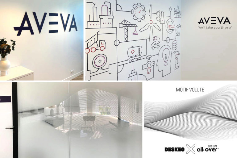 Du style avec Deskeo et du sur-mesure avec Groupe ALL-OVER ! Une signalétique réalisée en partenariat et pour AVEVA :…