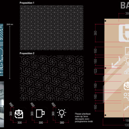 • CHOIX FONCTIONNELS dimensions réelles et planification des zones clés, signalétique, branding, placement des logos, visuels, messages clés.