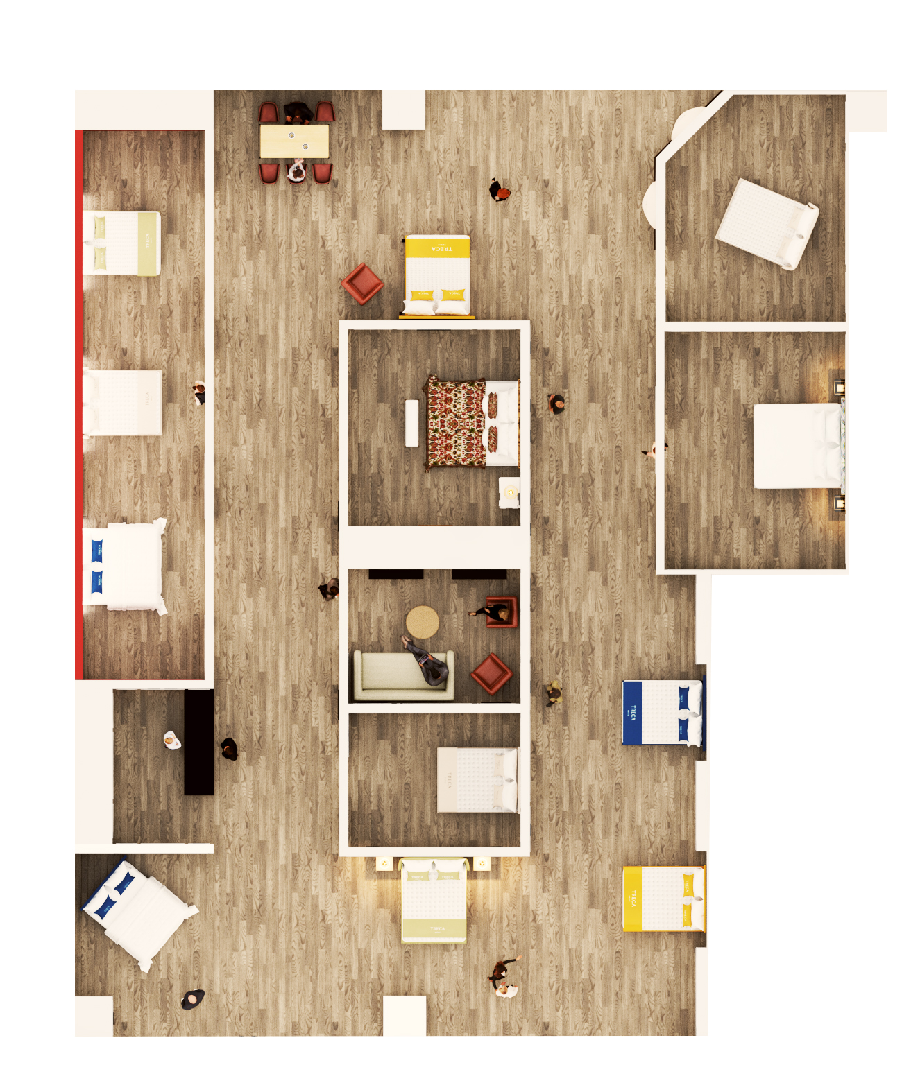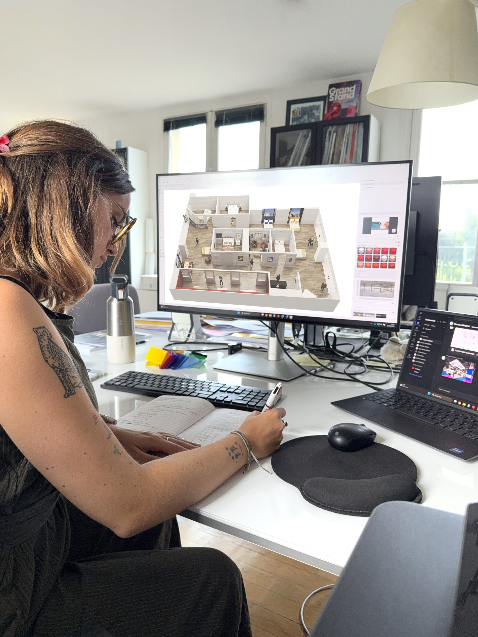 • CHOIX ESTHÉTIQUES habillage graphique, mise en lumière, sélection des matériaux, textures et harmonies colorimétriques. Tous ces éléments sont pensés pour créer une atmosphère cohérente et valorisante, en accord avec votre identité et l’expérience attendue par vos publics…