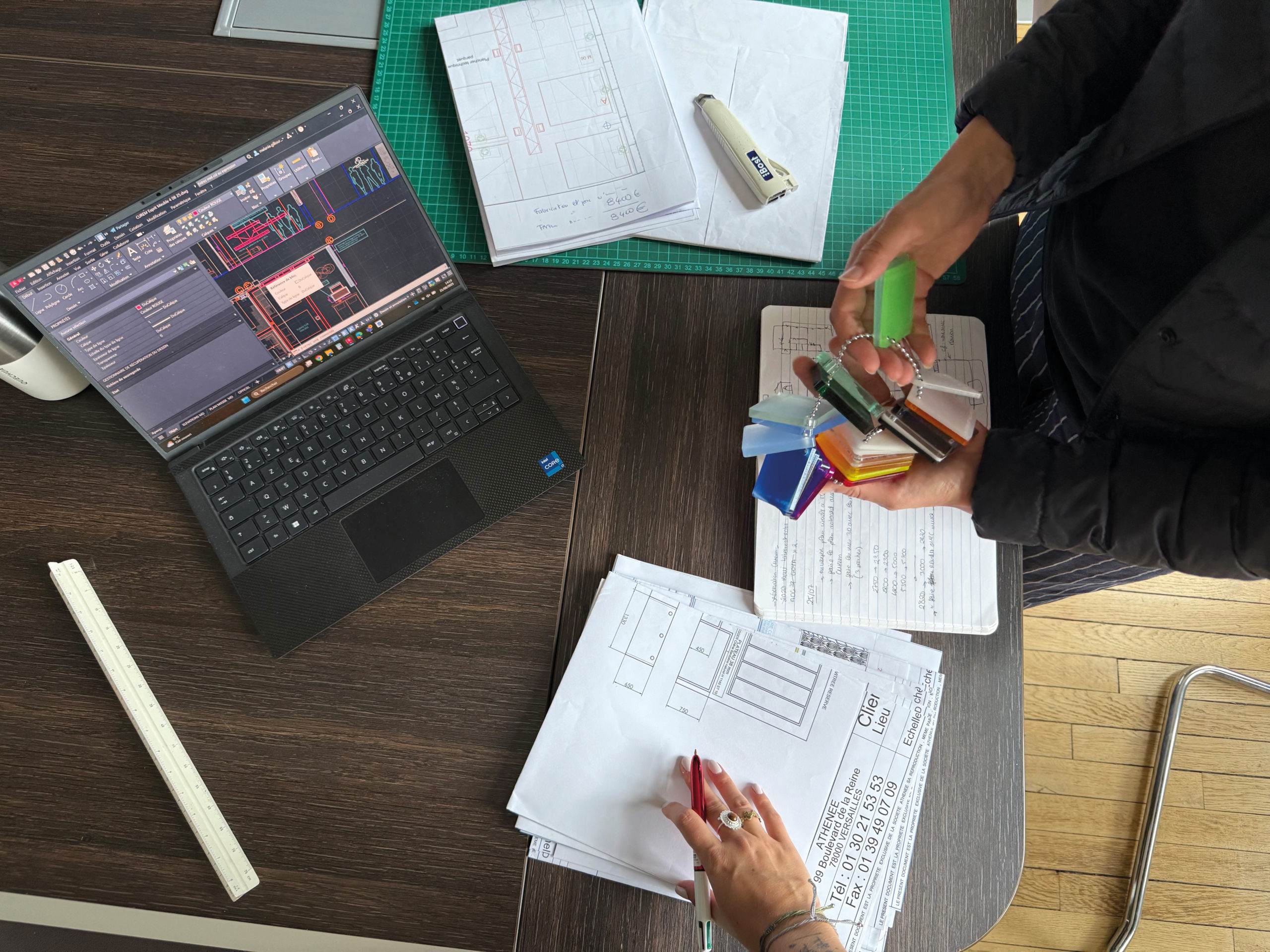 Après votre validation, votre chef de projet établit les plans de fabrication à destination de notre atelier de menuiserie et de nos partenaires spécialisés. Ces documents rassemblent toutes les informations nécessaires pour garantir une production optimisée et une installation sans faille sur site.