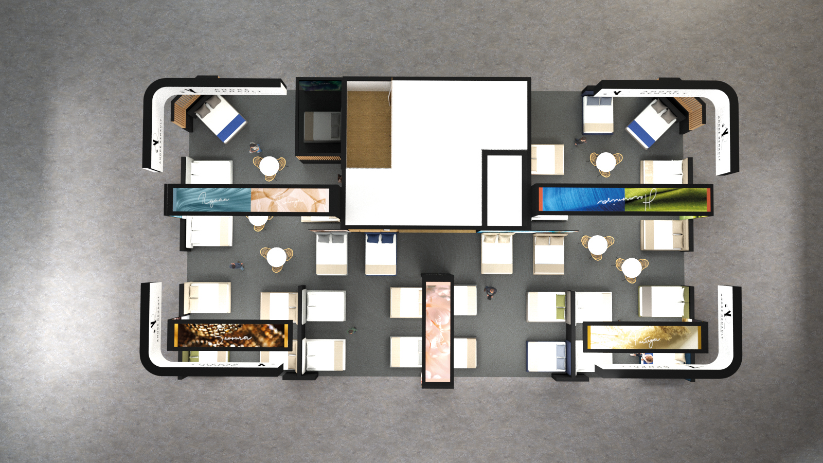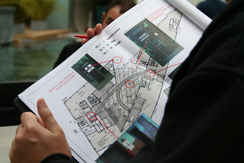 • CHOIX FONCTIONNELS dimensions réelles et planification des zones clés, signalétique, branding, placement des logos, visuels, messages clés.
