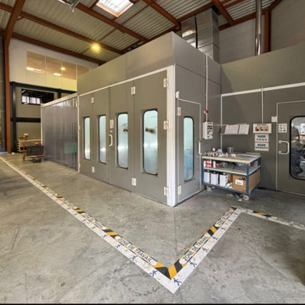 Ce laboratoire est équipé de technologies et d’outils spécialisés pour la préparation des surfaces, l’application de peinture et le séchage des pièces, assurant ainsi des résultats professionnels pour les projets de peinture.