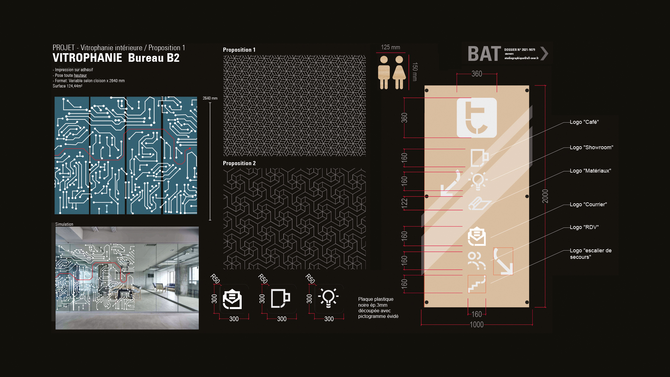En cohérence avec votre charte graphique et selon les exigences de votre projet, nous concevons des propositions graphiques sur mesure, avec simulations sur visuels ou photos. Ces étapes permettent de valider sereinement les choix esthétiques et fonctionnels avant le lancement en production.