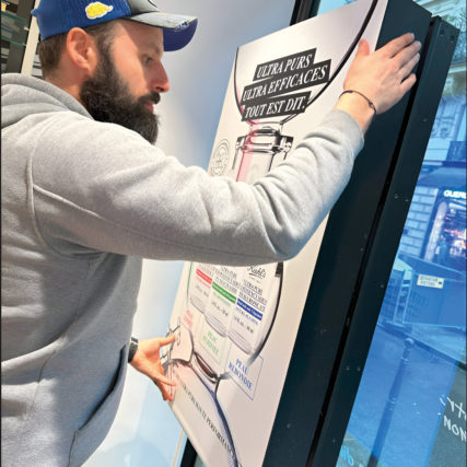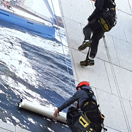 Nous réalisons la pose de supports de communication visuelle sur tous types de sites, en intérieur comme en extérieur, avec des équipes qualifiées et des équipements professionnels adaptés.