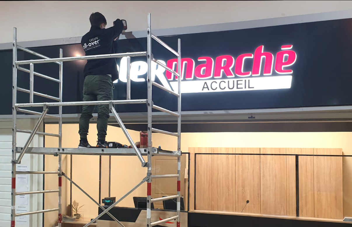 Pose d’enseignes et de signalétique intérieure et extérieure