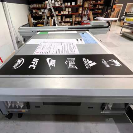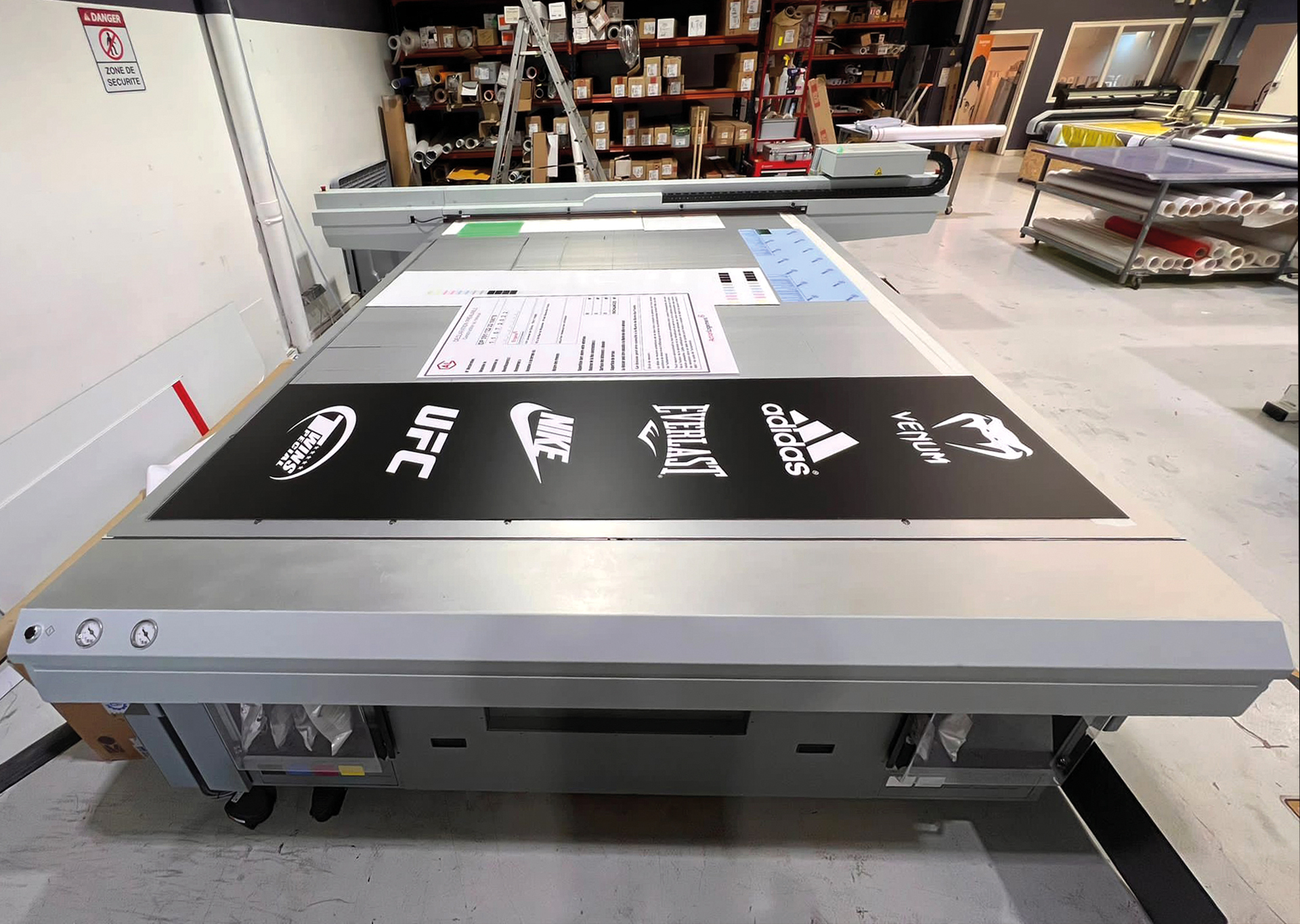 - Imprimante OCÉ ARIZONA1260XT – encres UV – couleurs, blanc, vernis, à plat – Laize max. 3000 x 2000 mm.