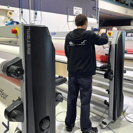- Deux imprimantes HP800W – encres Latex – couleurs & blanc, Roll to roll – Laize max. 1600 mm