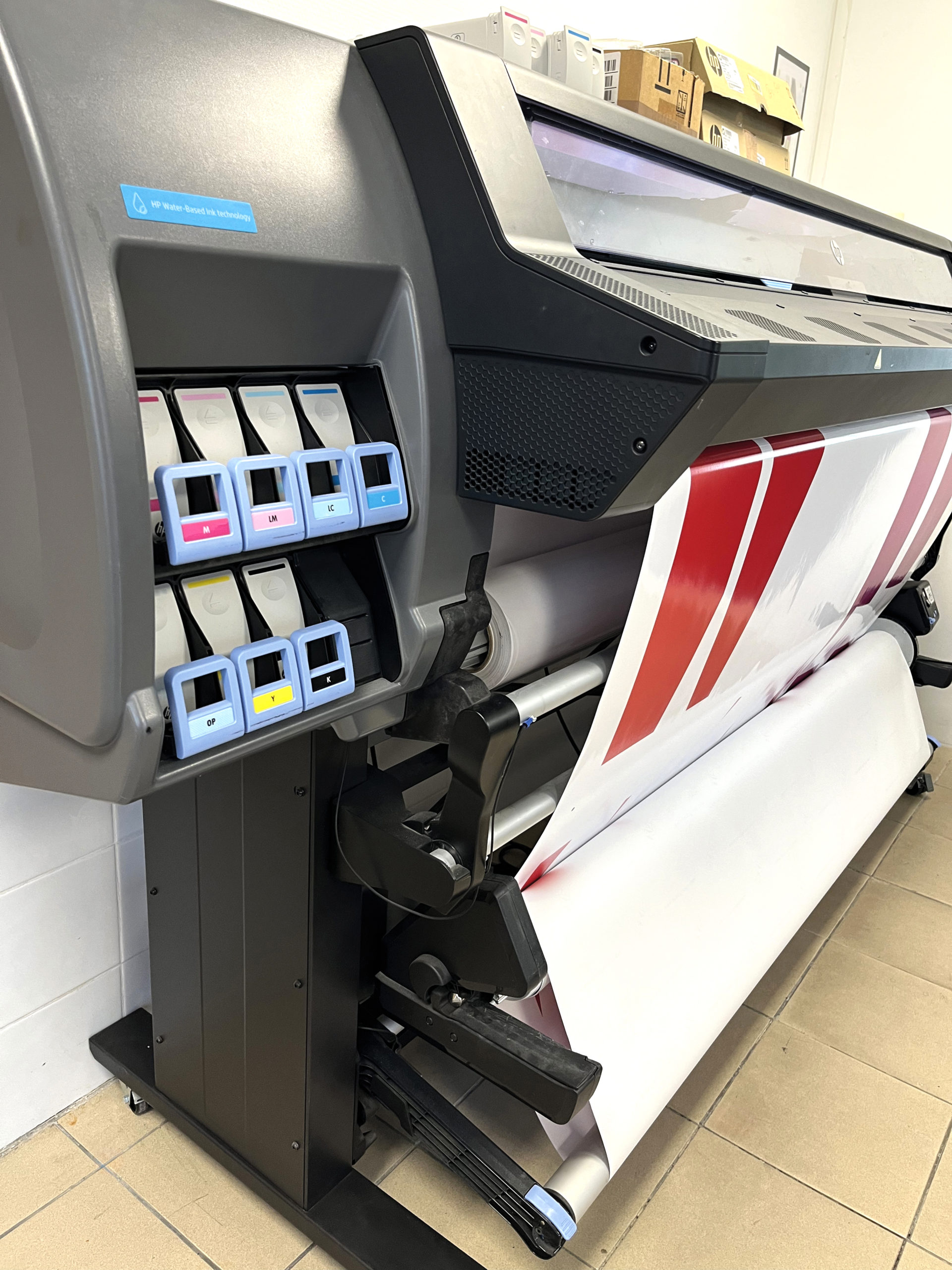 - Imprimante HP365 – encres Latex – couleurs, Roll to roll – Laize max. 1600 mm.