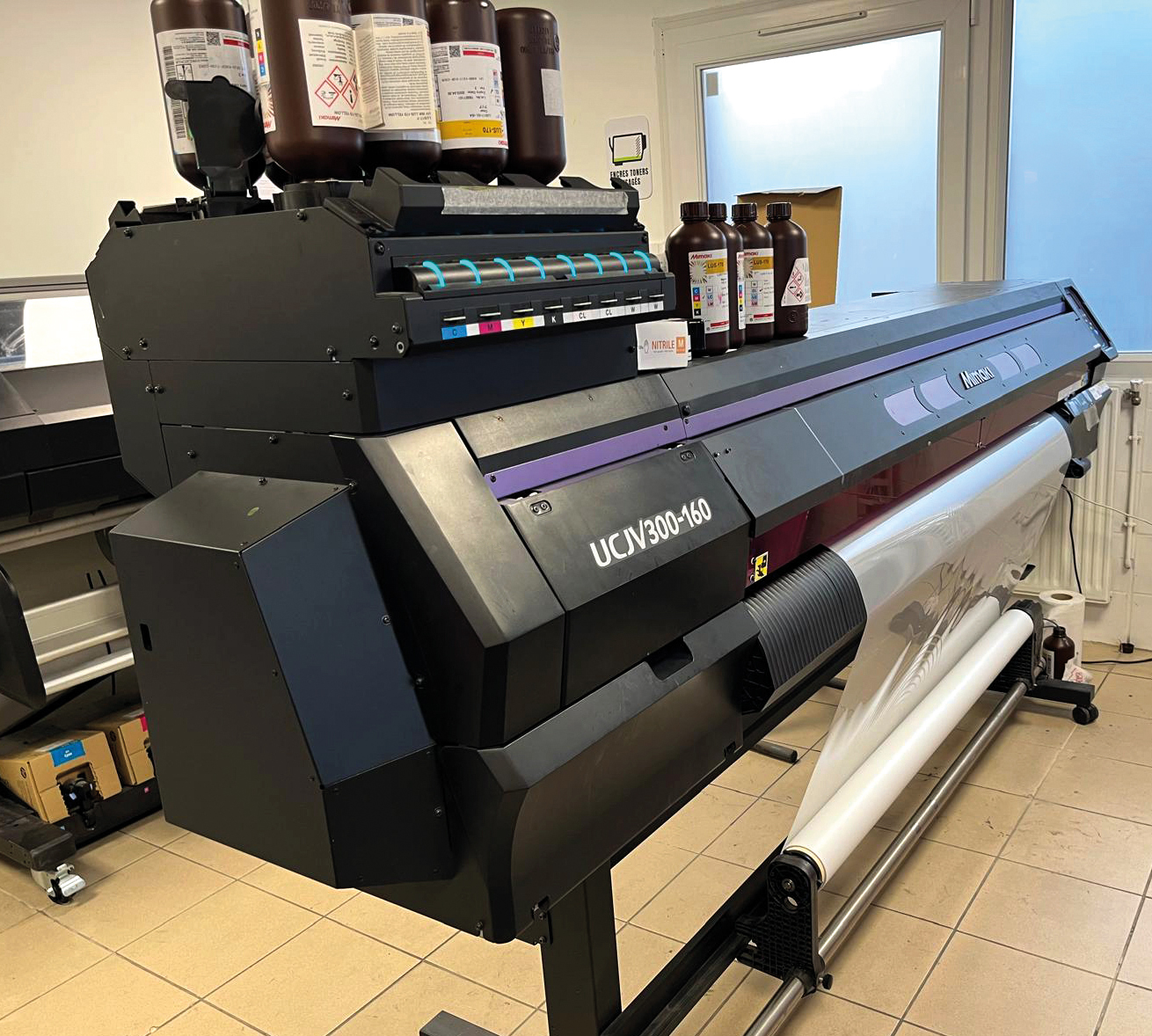 - Imprimante MIMAKI UCJV 300-160 – encres UV – couleurs, blanc, vernis, Roll to roll – Laize max. 1600 mm.