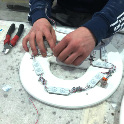 - Table de montage & animation LED – équipement et mise en lumière des enseignes.