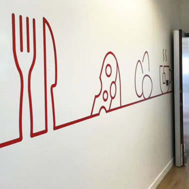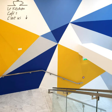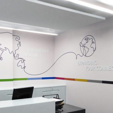 Découpe adhésive | Adhésif imprimé | Décor mural | Marquage au sol | Adhésif Mural | Sticker mural | Lettrage découpé | Mot découpé en adhésif | Visuel adhésif trompe œil | Anamorphose | Visuel adhésif nature | Visuel adhésif personnalisé | Visuel adhésif sur-mesure … sur mur, plafond, vitre, tout est possible !