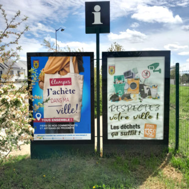 Communiquez à l’occasion de votre ouverture de magasin ou annoncez vos promotions du moment (Fêtes des pères et mères, rentrée scolaire, Saint-Valentin, Black Friday, Noël, etc.) ! Votre activité se trouve principalement dans l’Essonne ? Nous vous offrons la possibilité de vous afficher en GRAND dans votre commune afin de faire vivre le tissu local en étant vu par le plus grand nombre ! Nos panneaux et espaces sont situés à des endroits stratégiques et s’inscrivent efficacement dans l’espace public, ils peuvent s’étendre jusque dans les Yvelines (78), le Val d’Oise (95), la Marne (51), la Seine-et-Marne (77), la Seine-Maritime (76).