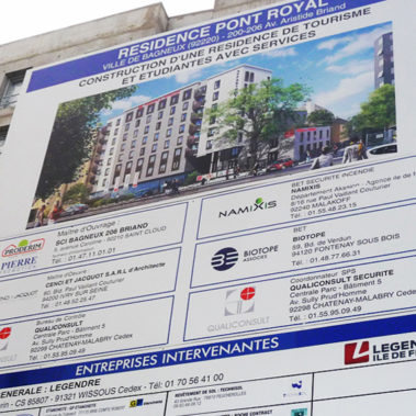 Palissade de chantier | Bâche publicitaire échafaudage | Panneau de chantier | Panneau de chantier personnalisé | Panneau de déclaration de travaux | Port des EPI | Point de rassemblement | Consignes de sécurité | Circulation chantier | Signalisation temporaire | Sécurité de chantier Panneau de chantier | Panneau PVC | Panneau alvéolaire | Balisage chantier sécurité | Marquage palissade de chantier | Promotion immobilière | Marquage adhésif sur palissade| Habillage palissade avant ouverture de magasin | Habillage en zone urbaine.