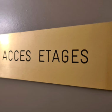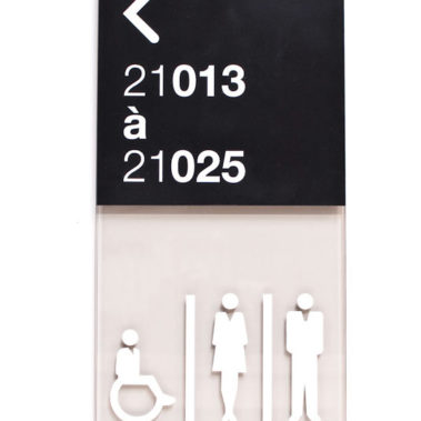 Numéro d’étage | Numéro ou lettre bâtiment | Pictogramme sanitaire | Signalétique sanitaire | Signalétique PMR | Signalétique sécurité | Signalétique ascenseur | Plaque de porte | Identification des tableaux électriques et locaux techniques | Plaque gaine électrique | Plaque coupe-feu | Plaque issue de secours | Plaque escalier | Point de rassemblement | Signalétique handicapé | Plan d’évacuation | Plan d’intervention | Bande de vigilance | Clous podotactiles | Bandes de guidage | Nez de marches | Signalétique règlementaire | Plaque gravoply | Plaque local technique | Numéro de rue.