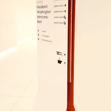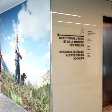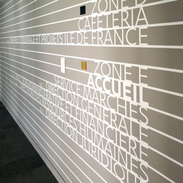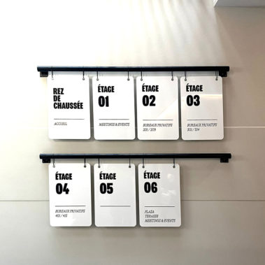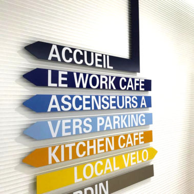 Signalétique corporate | Signalétique intérieure | Signalétique extérieure | Logotype sur façade | Logo accueil | Enseigne intérieure | décor NeonFlex | Panneau d’information | Signalétique d’orientation | Signalétique directionnelle | Signalétique récapitulative | Totem | Signalétique ascenseur | Numéro d’étage | Drapeau | Palissade | Porte-document | Vitrine d’affichage | Plaque de porte | Plaque Pictogramme | Signalétique sanitaire | Picto sanitaire | Porte étiquette | Porte étiquette | Panneaux de signalétique | Panneaux d’informations | Marquage au sol | Eléments de signalétique.