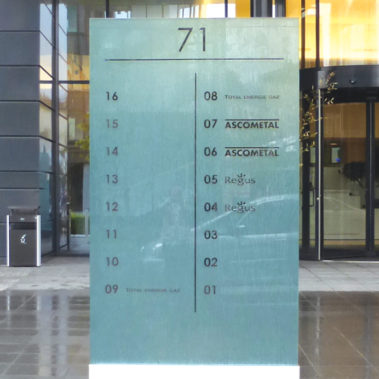 Qu’elle soit extérieure ou intérieure, la signalétique tertiaire est porteuse de votre image. Elle a pour but de guider, d’orienter vos visiteurs, elle doit être élégante et refléter le dynamisme de votre entreprise. Forts d’une grande expérience dans la signalétique de bureau, nous étudierons ensemble sa taille et sa disposition dans vos locaux. Grâce à notre connaissance des matériaux (inox, aluminium, verre, bois, etc) et à notre parfaite maîtrise de la fabrication, nous vous offrirons une signalétique harmonieuse et efficace.